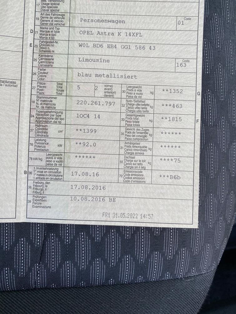 OPEL Astra K 14XFL