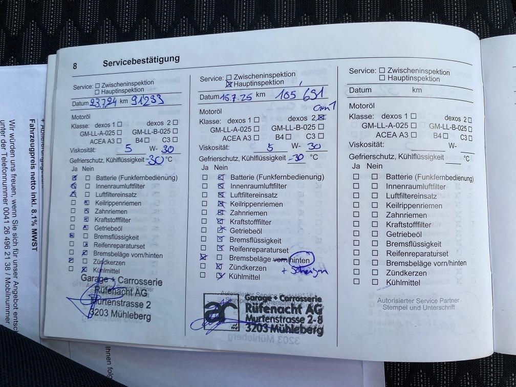 Fahrzeug läuft sehr gut. Letzter Service 15.07.2025 bei 105691 km, Sommer und Winterräder, Karrosserie keine Beulen, Gebrauchsspuren gemäss Bilder