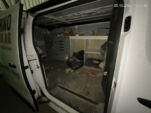 Beschreibung der Schäden: Front : Motorhaube, Querträger, beide Längsträger, beide Kotflügel und komplettes Kühlerpaket deformiert. Schlossträger, Lüfterzarge, beide Scheinwerfer, Kühlergitter und Stosstange gebrochen. Motorlampe leuchtet. Das Gestell im Laderaum wird nicht ausgebaut. Alles andere wird der VN entfernen.