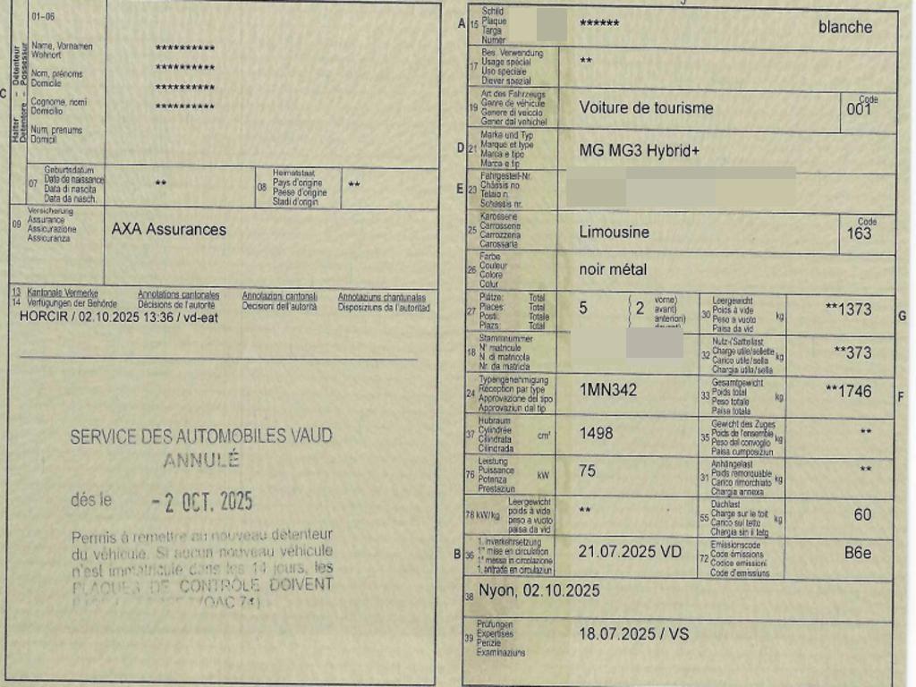 Assist: Rückfahrkamera, Licht: LED-Scheinwerfer mit Leuchtweitenregulierung, Airbag: Airbag Fahrer und Beifahrer, Assist: Parksensoren hinten, Elektrische Fensterheber vorne + hinten, Licht: LED-Tagfahrlicht, Servolenkung, Klima: Automatische Klimaanlage, Media: 7" virtuelesInstrument + 10.25"Infotaimentbildschirm, Getriebe: 5-Gang-Getriebe, Media: Radio mit 6 Lautsprechern, Polster: Stoff-Ausstattung, Räder: Reifendruckkontrollsystem, Media: Navigation, Lenkrad: Multifunktionslenkrad, Antiblockiersystem (ABS), Assist: MG Pilot: ACC/ ISA/ UDW/ FCW/ LDW/ ELK/ LKA, Zentralverriegelung mit Fernbedienung, Media: Android Auto/Apple CarPlay, Airbag: Seitenairbags für Fahrer und Beifahrer, Lackierung: Uni-Lackierung, Sitze: Manueller höhenverstellbarer Fahrersitz, Elektrisch verstellbarer / manuell einklappbarer Aussenspiegel, Motorstart mit einem Knopfdruck, Räder: 16''-Zoll-Leichtmetallfelgen 195/55R16, Garantie: 7 Jahre oder 150'000 km, ESP und TCS