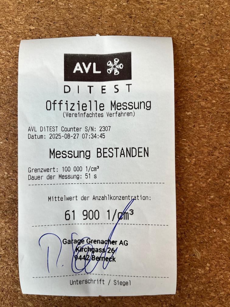 Dieselpartikelfiltertest wurde erfolgreich durchgeführt (Schriftlicher Ausdruck ist vorhanden).