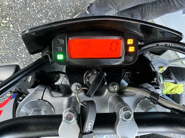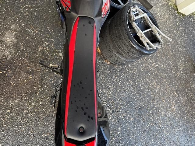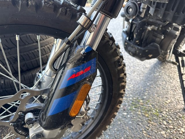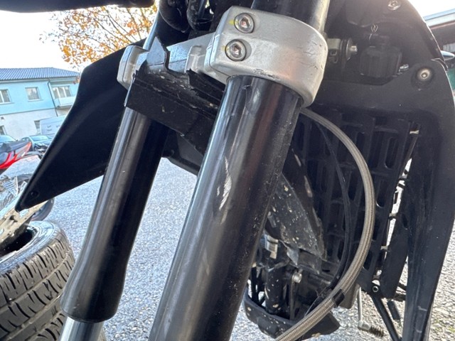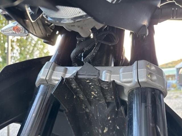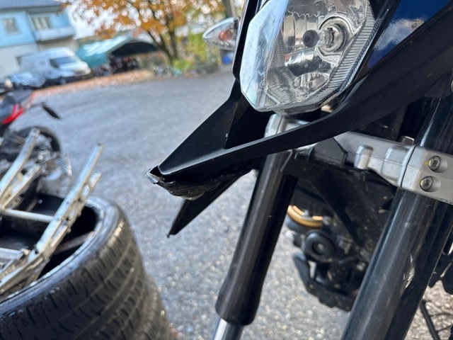 Schutzblech vorne defekt. Gabel beschädigt. Lenker verbogen.