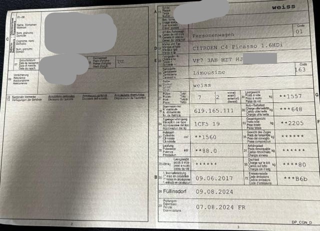 Rechte Seite beschädigt. Anstoss rechts im Bereich der A-Säule. Anstoss rechts im Bereich der B-Säule. Tür vorne rechts ist eingedrückt.