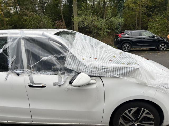 Windschutzscheibe ist gerissen. Türscheibe vorne rechts ist zerbrochen / beschädigt.
