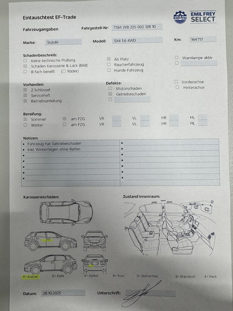Diverse Schäden an Karosserie/Lack. Fahrzeug ab Platz, ohne Garantie und Aufbereitung. Motor Getriebe Vorderachse Hinterachse Airbags ausgelöst: 0 unbekannt ( Abfallcode 16.01.04ak )