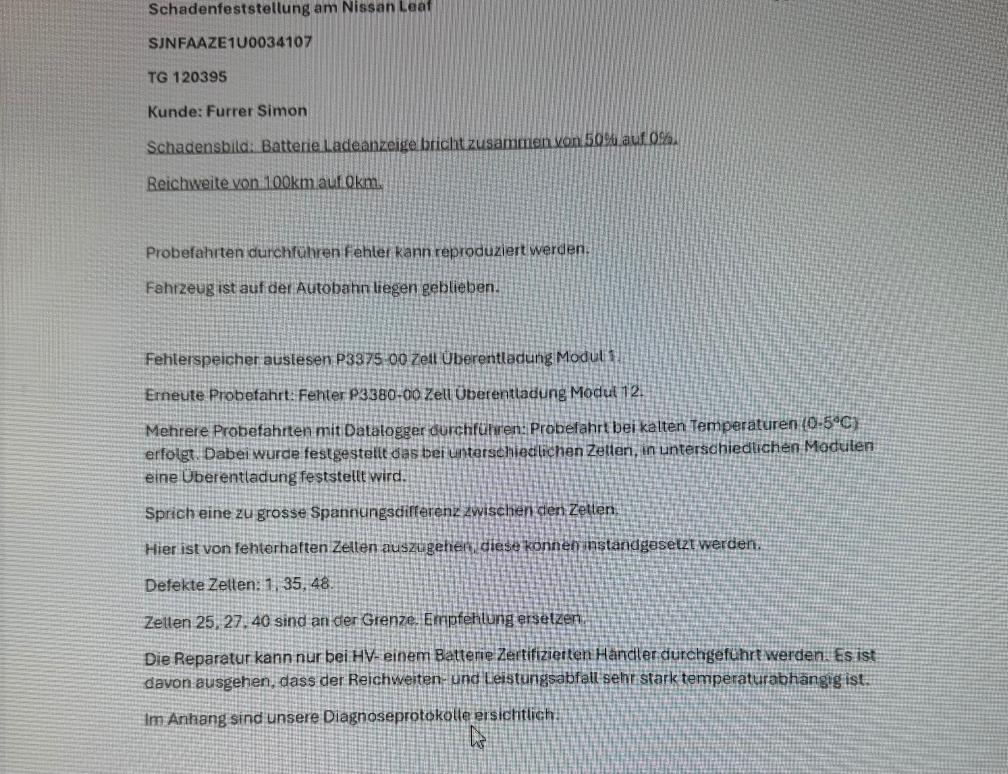 Im Winter bei Minustemperaturen schnelle Batterieentladung! Einzelne Batteriezellen müssen ersetzt werden! Siehe Bericht!
