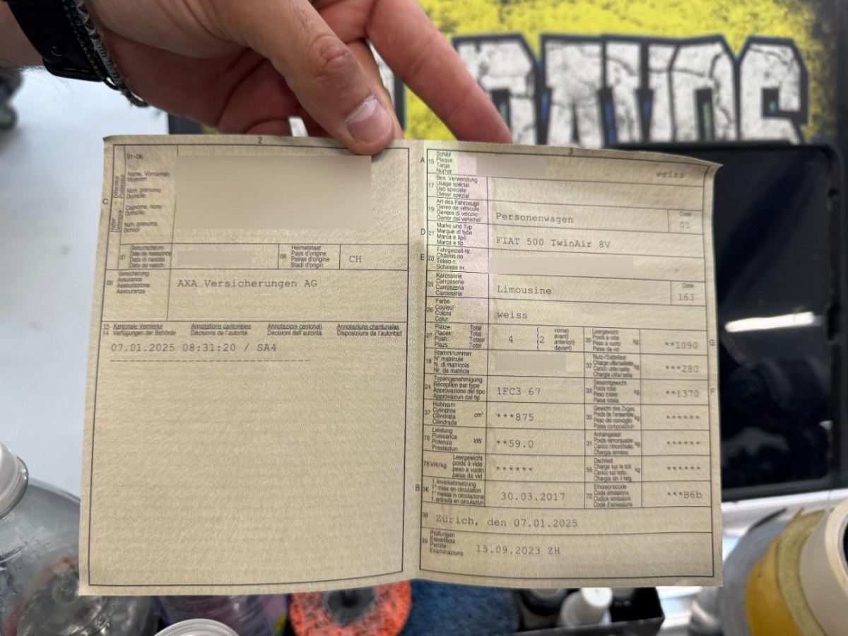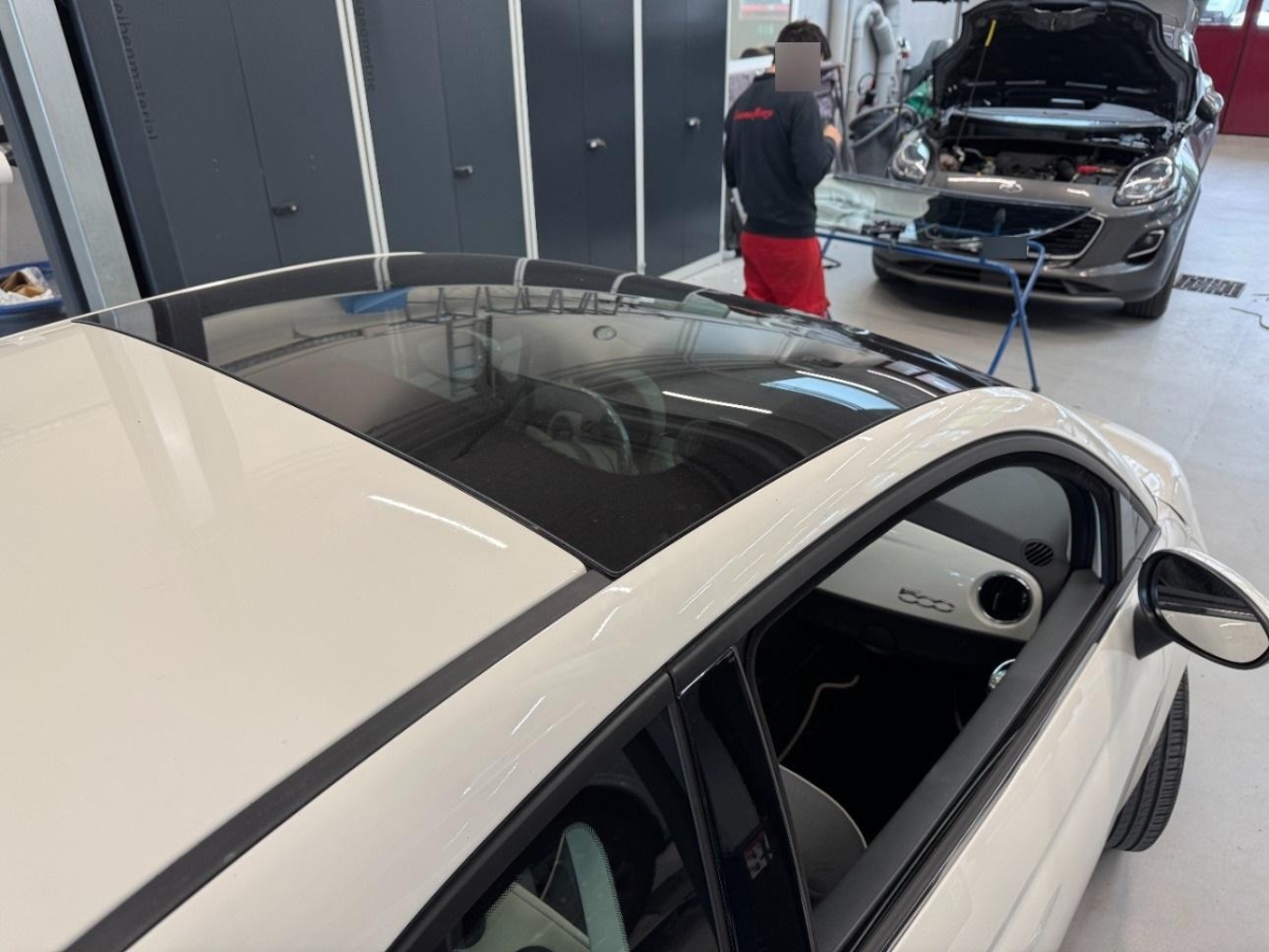 Drehzahlmesser, Kartentasche an der Rückenlehne, Auspuffblende, verchromt, Beifahrersitz mit mechanischem Positionsspeicher (Easy-Entry), 3-Punkt-Sicherheitsgurte auf allen Plätzen, Aktive Fuss-Stütze, Wärmeschutzverglasung, Komfortblinker, Räder: Reifenpannen-Kit, Assist: Antriebsschlupfregelung (ASR), Panorama-Glasdach, Kopfstützen vorne höhenverstellbar, Licht: Nebelschlussleuchte, Warnblinkautomatik bei Vollbremsung, Uni-Lackierung, Steckdose 12V, Anti-Submarining, Aussentemperaturanzeige, 4 Leichtmetallfelgen 15J mit Pneu, Polster: Stoffsitze, Tankdeckel abschliessbar, Automatische Türverriegelung geschwindigkeitsabhängig, Elektronischer Bremskraftverteilung EBD, Elektronisches Stabilitäts-Programm (ESP), Räder: Reifendruck-Kontrollanzeige, Start/Stop-Funktion, Lenkrad: Lenkrad höhenverstellbar, Bordcomputer, Chrom-Paket, Servolenkung, Licht: Drittes Bremslicht, Multifunktionslenkrad in Leder, Zentralverriegelung mit Fernbedienung und automatischer Türverriegelung, Heckscheiben-Wisch-/Waschanlage, Pollenfilter (Staubfilter), Aussenspiegel rechts und links beheizbar und elektrisch verstellbar, Uconnect Touchscreenradio mit 7'' Bildschirm, USB, AUX-IN, Bluetooth Audiostreeming, DAB+, 6 Lautsprecher, Gurtkontrolle, Wegfahrsperre elektronisch, Scheibenwischer vorne mit Intervall, Türgriffe aussen verchromt, Stossstangen verchromt, Geschwindigkeitsbegrenzer, Make up-Spiegel beleuchtet für Beifahrer, Haltegriff für Beifahrer, Airbag: Airbag Fahrer und Beifahrer inkl. Seitenairbags, Airbag: Knie-Airbag für Fahrer, Gurtstraffer vorne, Getönte Scheiben, Tageskilometerzähler, Getriebe: 5-Gang-Getriebe, Katalysator geregelt, Heckscheibenheizung, ISOFIX Kindersitzvorrichtung, Kopfstützen hinten höhenverstellbar, Airbag: Airbag Beifahrer deaktivierbar, Airbag: Window-Kopfairbags, Berganfahrhilfe (Hill Holder), Tempomat, Antiblockiersystem (ABS), Sitze: Fahrersitz höhenverstellbar, Rücksitzlehne geteilt abklappbar, Elektrische Fensterheber vorne, Klimaanlage, Abblendlichtausschaltverzögerung 'Follow me home', Seitenfenster-Zierleisten verchromt, Assist: Bremsassistent (BAS), Licht: LED-Tagfahrlicht