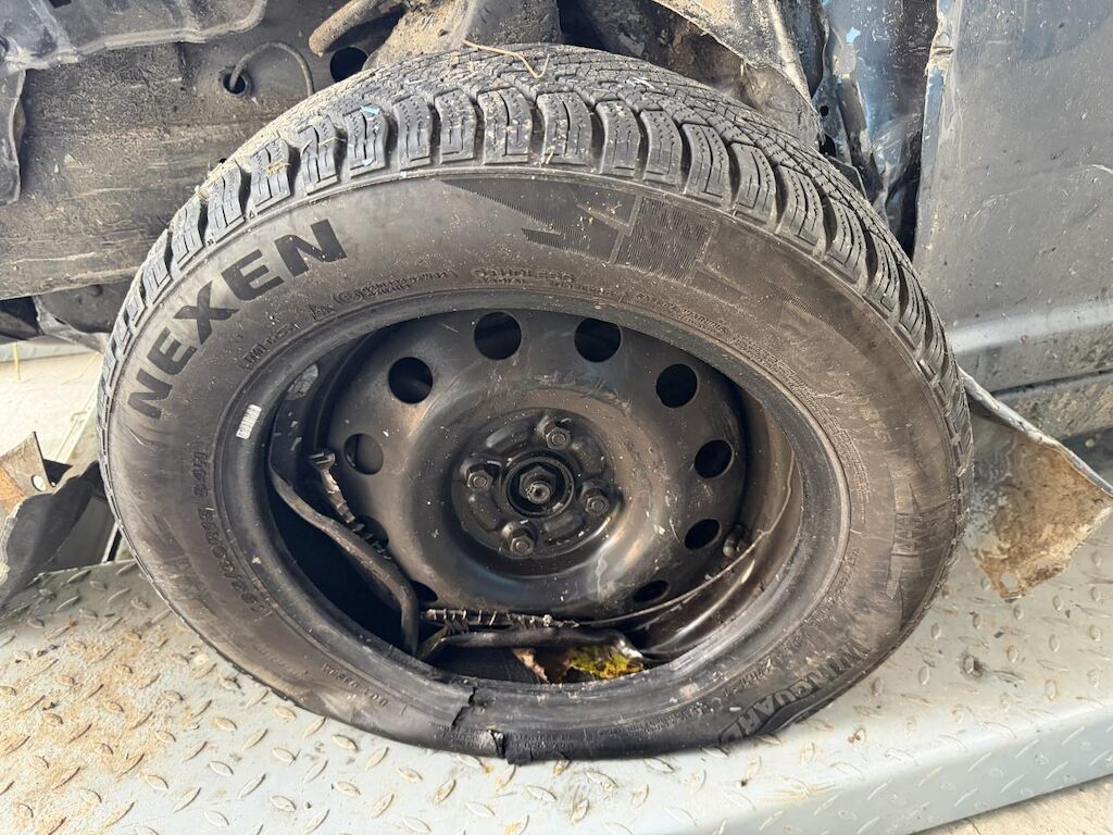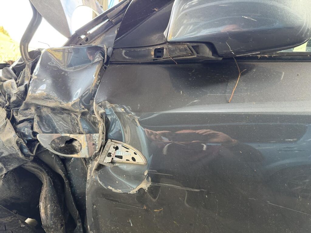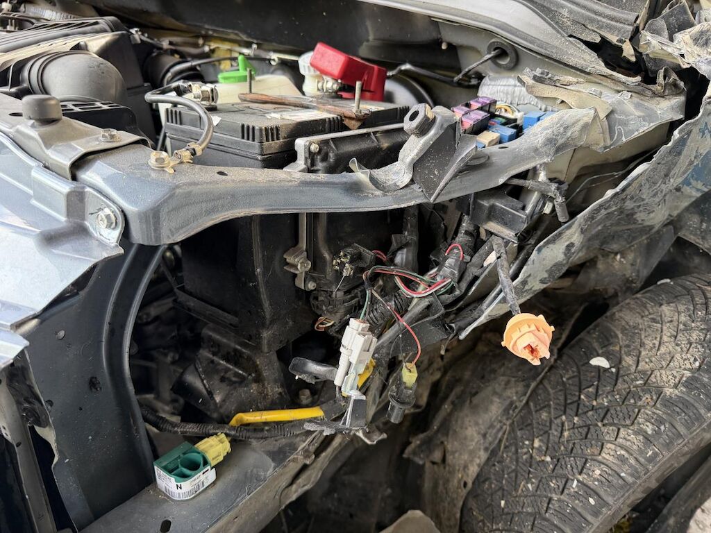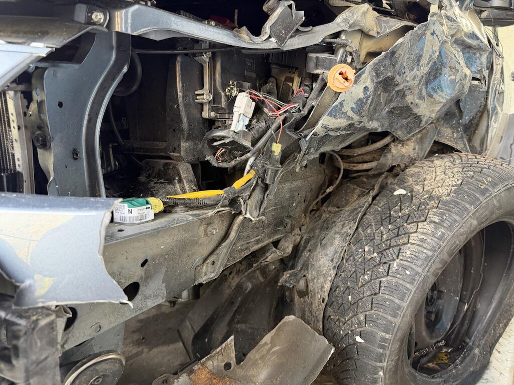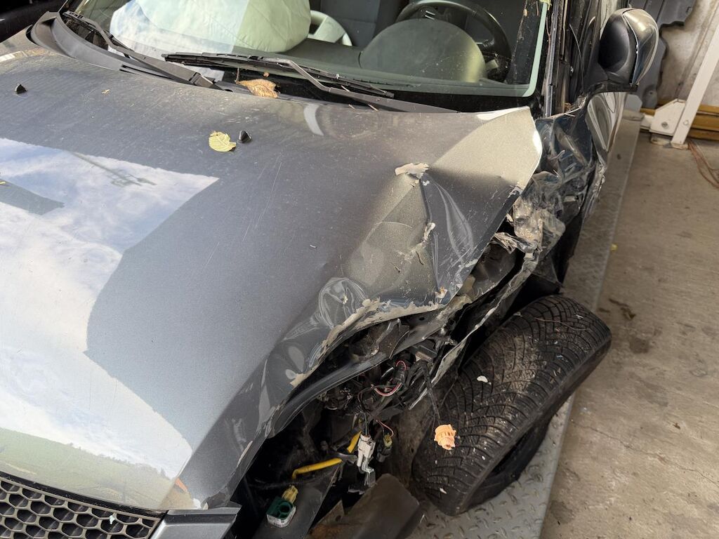 Frontalkollision links: Beide Airbag vorne ausgelöst, Massiver Schaden vorne links (Motorhaube, Radaufhängung, Stossstange etc.) Motor läuft nicht, Fahrzeug ist nicht fahrbar und muss aufgeladen werden, Nach Frontalkollision rutsche das Fahrzeug in einen Bach, div. beschädigte Fahrzeugteile von Ästen und Steinen. (Siehe Fotos) Motor Getriebe Vorderachse Hinterachse Airbags ausgelöst: 2 unbekannt ( Abfallcode 16.01.04ak )