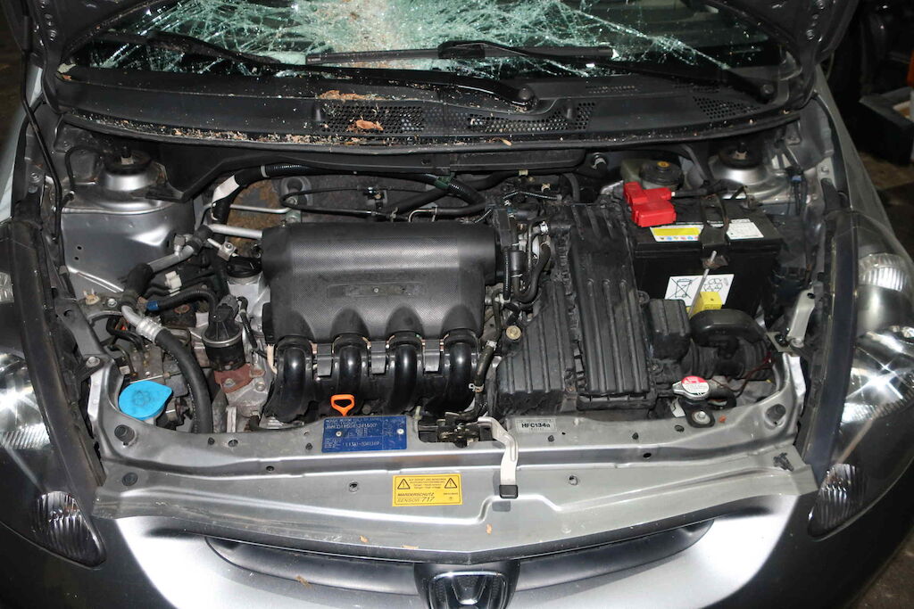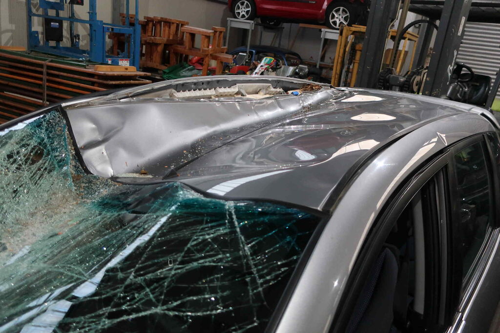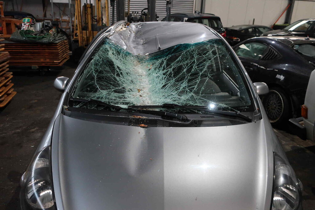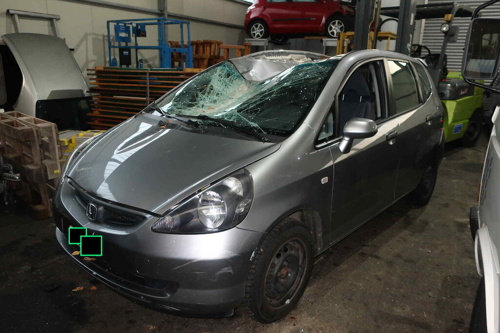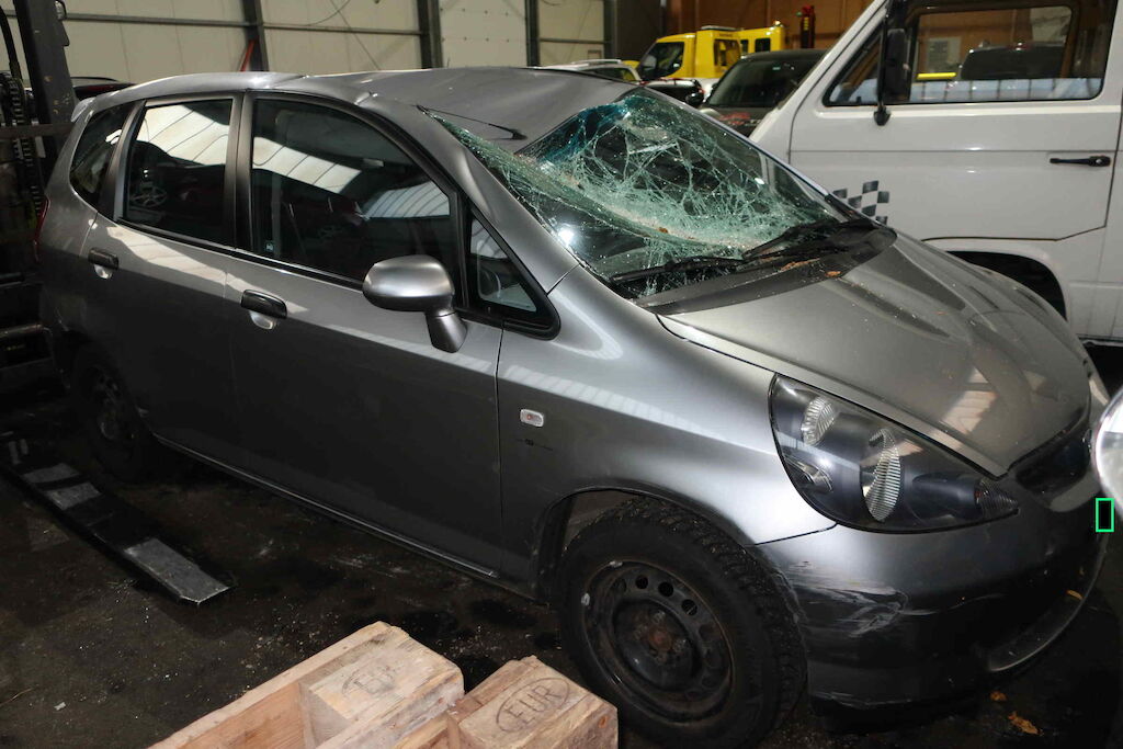 Motorhaube, Frontscheibe, Dach, Dachrahmen li und re, Heckdeckel, Seitenwand hi re beschädigt Karosserie komplett deformiert Motor Getriebe Vorderachse Hinterachse Airbags ausgelöst: 0 unbekannt ( Abfallcode 16.01.04ak )