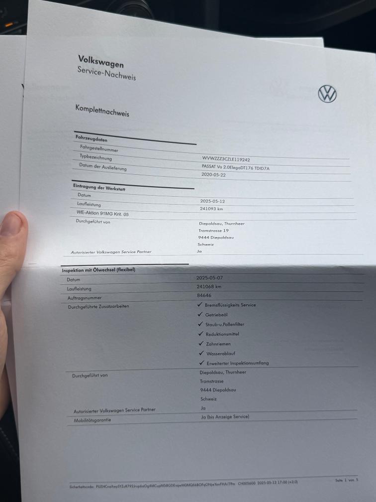 Dieselpartikelfiltertest wurde erfolgreich durchgeführt (Schriftlicher Ausdruck ist vorhanden).