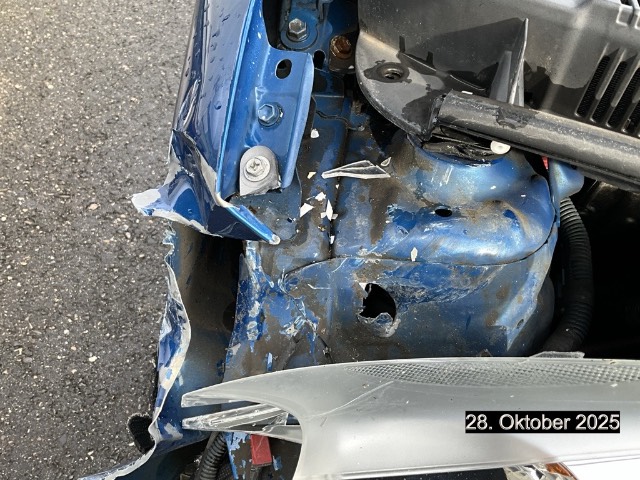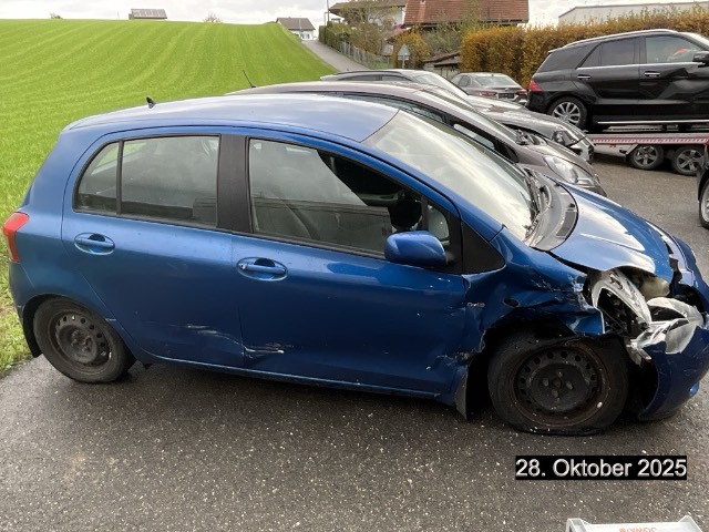 Beschreibung der Schäden: Stossstange, Scheinwerfer, Radhaus Aufhängung, Kotflügel, Türe vorne und hinten, Seitenwand und Stossstange hinten Seite rechts eingedrückt zerkratzt