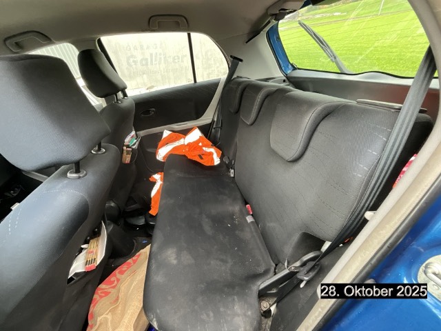 Antiblockiersystem (ABS), Radio/CD-Player, Scheibenwischer vorne mit Intervall, Elektrische Fensterheber vorne, Licht: Nebelschlussleuchte, Heckscheiben-Wisch-/Waschanlage, Sitze: Fahrersitz höhenverstellbar, Drehzahlmesser, Radiofernbedienung, Schalthebelknauf in Leder, Media: Radiovorbereitung, Antenne, Entstörung und 6 LS, Airbag: Airbag Fahrer und Beifahrer, Tageskilometerzähler, Aussentemperaturanzeige, Gurtstraffer vorne, Rücksitze längsverstellbar, Räder: Radzierblenden, Lenkrad: Lederlenkrad, Handschuhfach, Tankdeckel-Entriegelung von innen, Lenkrad: Lenkrad längs- und höhenverstellbar, 3-Punkt-Sicherheitsgurte auf allen Plätzen, Schublade unter Beifahrersitz, Wegfahrsperre elektronisch, Airbag: Seitenairbags, Getönte Scheiben, Höhenverstellbare Gurten vorne, ISOFIX Kindersitzvorrichtung, Sitze mit Schleudertrauma-Schutzsystem, Laderaumabdeckung, Lackierung: Uni-Lackierung, Airbag: Airbag Beifahrer deaktivierbar, Sitze: Rücksitzlehne geteilt abklappbar, Polster: Stoff-Ausstattung, Make up-Spiegel rechts, Zentralverriegelung mit Fernbedienung, Airbag: Window-Kopfairbags, Leuchtweitenregulierung von innen, Oxydations-Katalysator, Leseleuchten, Stahlräder, Licht: Drittes Bremslicht, Getriebe: 5-Gang-Getriebe, Klima: Klimaanlage, Pollenfilter (Staubfilter), Mittelkonsole mit Ablagefach, Türgriffe innen verchromt, Lichtwarnsummer, Seitenaufprall-Schutzsystem, Aussenspiegel und Türgriffe in Wagenfarbe, 3 Kopfstützen hinten, Multifunktionsanzeige, Heckscheibenheizung, Bremsassistent (BAS), Digital Uhr, Airbag: Knie-Airbag für Fahrer, Make up-Spiegel links, Servolenkung geschwindigkeitsabhängig, Gurtkontrolle, Cupholder vorne und hinten, Aschenbecher und Zigarettenanzünder, Bordcomputer, Aussenspiegel rechts und links beheizbar und elektrisch verstellbar, Stossstangen in Wagenfarbe, Notrad