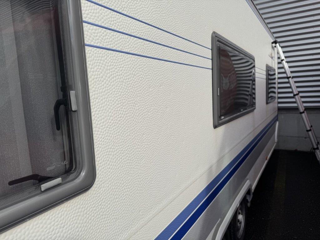 Hagelschaden Dach + Seite links / Vorschäden : Diverse Carrosserieteile leicht beschädigt. / Der Wohnanhänger stand seit einigen Jahren fix auf einem Campingplatz.