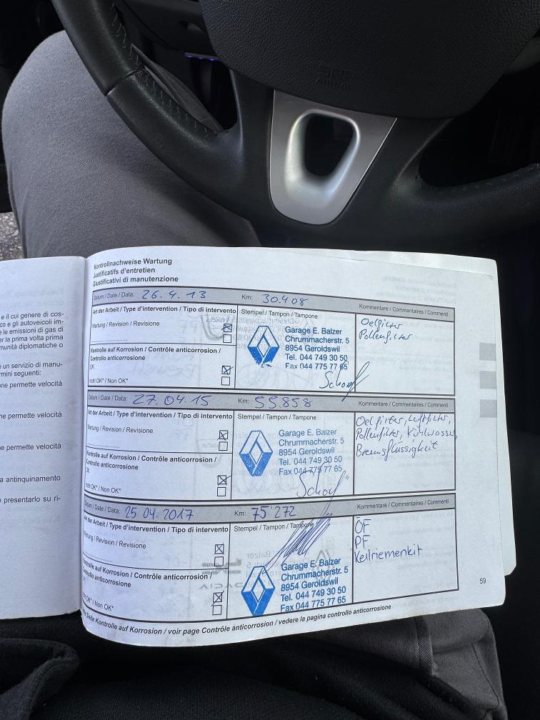 Die Felgen auf den Bildern werden durch andere Felgen ersetzt. 8-Fach berädert! Service gepflegt immer bei Renault Garage! Technisch Top! Schaden gemäss Bilder.