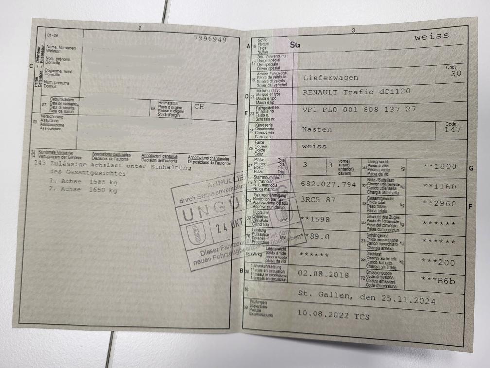 Fahrzeug stammt von einem Hufschmid (Geschmacksemissionen). Laderaum und Fahrerraum müssten gereinigt werden. Letzter Service im 09.2024 b. 121391km. Damals Bremsen vorne und hinten ersetzt (Scheiben und Beläge). Das Fahrzeug hat auf beiden Seiten und Heckscheibe eine Beschriftung montiert. Diese muss durch den Käufer demontiert werden. Fahrzeug fährt trotz Motorleuchte normal, kann ev. aufwärts etwas Leistung verlieren. Es wurde kein Eintauschtest vorgenommen. Verkauf ab Platz ohne Garantie.