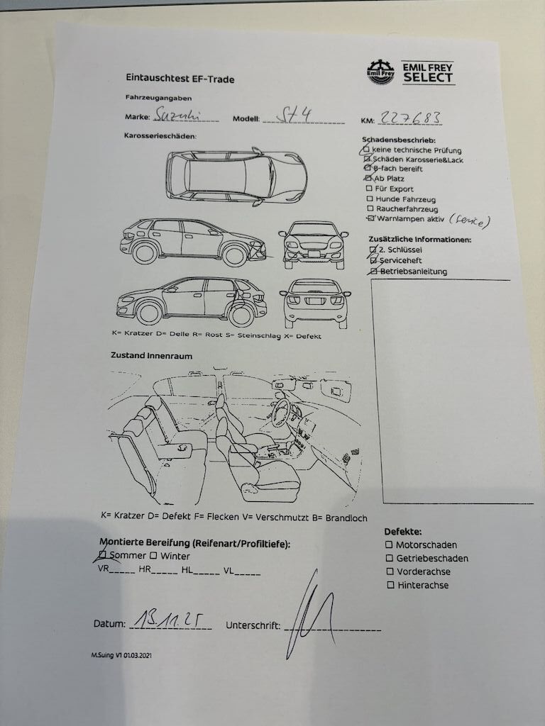 Keine technische Prüfung (Werkstatttest) vorgenommen Diverse Schäden an Karosserie/Lack. 8-fach bereift. Fahrzeug ab Platz, ohne Garantie und Aufbereitung. Es leuchten Warnlampen während des Betriebs. Motor Getriebe Vorderachse Hinterachse Airbags ausgelöst: 0 unbekannt ( Abfallcode 16.01.04ak )