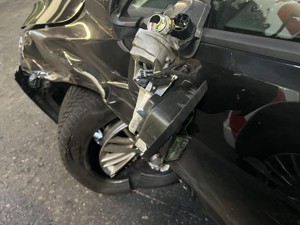 Schaden vorne links: Stossfänger, Scheinwerfer, Kotflügel, Vorderachse, Türe, A-Säule, Gurtstraffer, Airbags haben ausgelöst, Aussenspiegel und diverse Teile sind beschädigt. Aufzählung ist nicht abschliessend, da Fahrzeug unzerlegt begutachtet wurde. Motor konnte vor Ort nicht gestartet werden. Es kann nicht gesagt werden, ob das Getriebe vom Schlag etwas abbekommen hat. Motor Getriebe Vorderachse Hinterachse Airbags ausgelöst: 3 unbekannt ( Abfallcode 16.01.04ak )