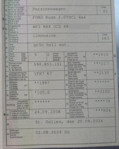 Airbag Fahrer und Beifahrerseite Elektronische Wegfahrsperre Elektrische Fensterheber vorne + hinten Aussenspiegel elektrisch verstellbar und heizbar Tempomat Bordcomputer Seitenairbag Fahrer und Beifahrerseite Nebelscheinwerfer Zentralverriegelung mit Fernbedienung Lederlenkrad Lenkrad verstellbar Kopfairbag vorne und hinten Aluminiumdekor Sportsitze vorne Dachspoiler Bremsassistent EBA Kindersitz-Vorbereitung Isofix Einstiegszierleisten Lendenwirbelstützen Fahrersitz inkl. Höheneinstellung Zwei Zonen-Klimaautomatik Lendenwirbelstützen Beifahrersitz inkl. Höheneinstellung Garantie 3 Jahre/ 100'000 km Steckdose 12 V im Gepäckraum Passformteppiche vorne Servolenkung elektrohydraulisch Dieselpartikelfilter ABS und EBD Elektr. Bremskraftverteilung Audiosystem mit Radio/ CD Reifen-Pannenset ESP und Elektronische Traktionskontrolle TCS Key Free Startfunktion Leder/ Stoffausstattung Licht- und Regensensor/ Innensp. aut. abblendbar Getönte Scheiben Ford-Easy-Fuel System/ Fehlbetankungsschutz Leichtmetallfelgen 17" 5x2-Speichen Keine Gewähr auf die Angaben der Serienausstattungen