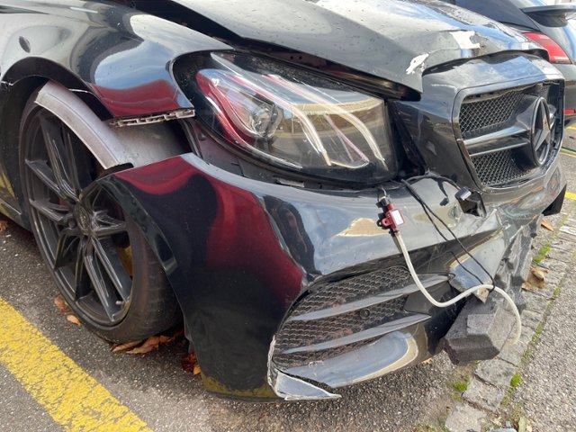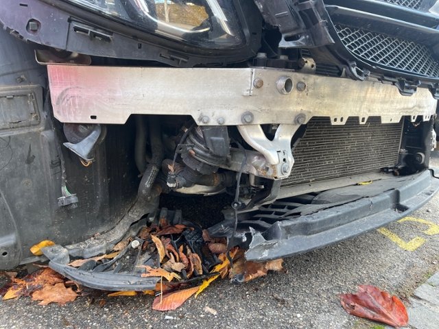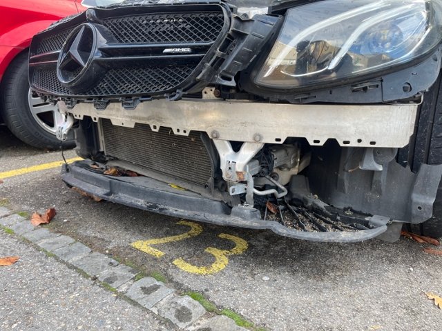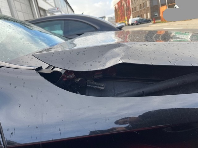 Front eingedrückt. Frontblech/Maskenblech eingedrückt.