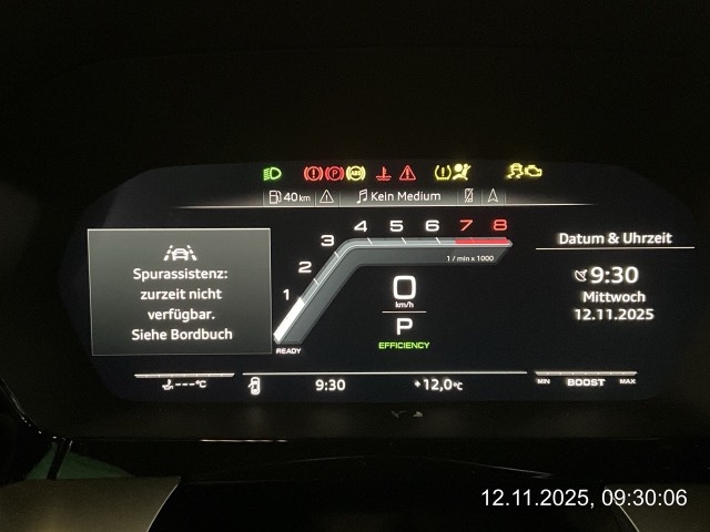 3-Punkt-Sicherheitsgurte auf allen Plätzen, Airbag: Airbag Beifahrer deaktivierbar, Airbag: Airbag Fahrer und Beifahrer, Airbag: Seitenairbags vorn, mit Kopfairbag und Interaktionsairbag vorn, Airbag: Window-Kopfairbags, Antiblockiersystem (ABS), Armauflage in Kunstleder, Assist: Adaptiver Geschwindigkeitsassistent, Assist: Ausweichassistent, Assist: Einparkhilfe hinten, Assist: Spurverlassenswarnung, Audi drive select, Audi pre sense front, Aussenspiegel rechts und links beheizbar und elektrisch verstellbar, Aussenspiegelgehäuse in Aluminiumoptik, Bordcomputer, Bordwerkzeug, Dachhimmel schwarz, Dekor: Aluminiumoptik im Interieur, Dekor: Dekoreinlagen Aluminium Spektrum dunkel, Drehzahlmesser, Einstiegsleisten mit Aluminiumeinlegern vorne, unbeleuchtet, mit S-Schriftzug, Einstiegsschienen verchromt, Einstiegsschienen vorne beleuchtet, Elektrische Kindersicherung, Elektronische Parkbremse, Elektronisches Stabilitäts-Programm (ESP), Fahrwerk: S-Sportfahrwerk, Frontscheibe in Akustikverglasung, Garantie: 2 Jahre ohne Kilometerbegrenzung (ab 1. Inv.), Geschwindigkeitsbegrenzer, Getriebe: 7-Gang- Automat S tronic, Gurtkontrolle, Heckscheibe, hintere Tür- und Seitenscheiben in Klarglas, Heckscheiben-Wisch-/Waschanlage, Heckscheibenheizung, Innenraumbeleuchtung, Innenspiegel abblendbar, Klima: 2-Zonen-Komfortklimaautomatik, Klima: Klimaanlage, Kofferraumbodenmatte, Kopfstützen hinten, Kopfstützen vorne höhenverstellbar, Kühlergrilleinfassungen, Lenkrad: Lenkrad mit Schaltwippen, Licht: Drittes Bremslicht, Licht: Licht- und Regensensor, Licht: Nebelschlussleuchte, Licht: Tagfahrlicht, Media: 6 Lautsprecher, Media: Audi connect Notruf &, Media: Bluetooth-Schnittstelle, Media: Digitaler Radioempfang (DAB), Media: MMI Radio plus, Media: Vorbereitung für Audi Smartphone Interface, Media: Vorbereitung für Audi connect plus Dienste, Mittelarmlehne vorn in Kunstleder schwarz mit Kontrastnaht in Rot, Modellbezeichnungen (Logo &, Nichtraucherausführung, Paket: Ablagen- und Gepäckraumpaket, Paket: Ambiente Lichtpaket, Partikelfilter und Oxydationskatalysator, Polster: Stoff Puls/Kunstleder mono.pur 550-Kombination mit S-Prägung, Progressivlenkung, Räder: Leichtmetallräder - 18 Zoll - 5-Doppelspeiche-V (S-Design), graphitgrau - Grösse 8,0 J × 18, mit Reifen 225/40 R 18, Räder: Leichtmetallräder, 5-Arm, 8,0Jx17 - Reifen 225/45 R17 91Y, Räder: Reifendruck-Kontrollanzeige, Räder: Reifenreparatur-Set (Tire Fit), S-Dachkantenspoiler, Schalt- / Wählhebel, Scheinwerfer-Reinigungsanlage, Sitze: Rücksitze geteilt abklappbar, Sitze: Rücksitzlehne abklappbar, Sitze: Sportsitze vorne, Sitze: Vordersitze heizbar, Sitze: Vordersitze manuell verstellbar, Steckdose 12V, Stopp-/Start-System, Teppichfussmatten vorne und hinten, Verbandmaterial und Warndreieck, Vorbereitung für Verkehrszeichenerkennung, Wegfahrsperre elektronisch, Zentralverriegelung mit Fernbedienung, Zierleisten schwarz