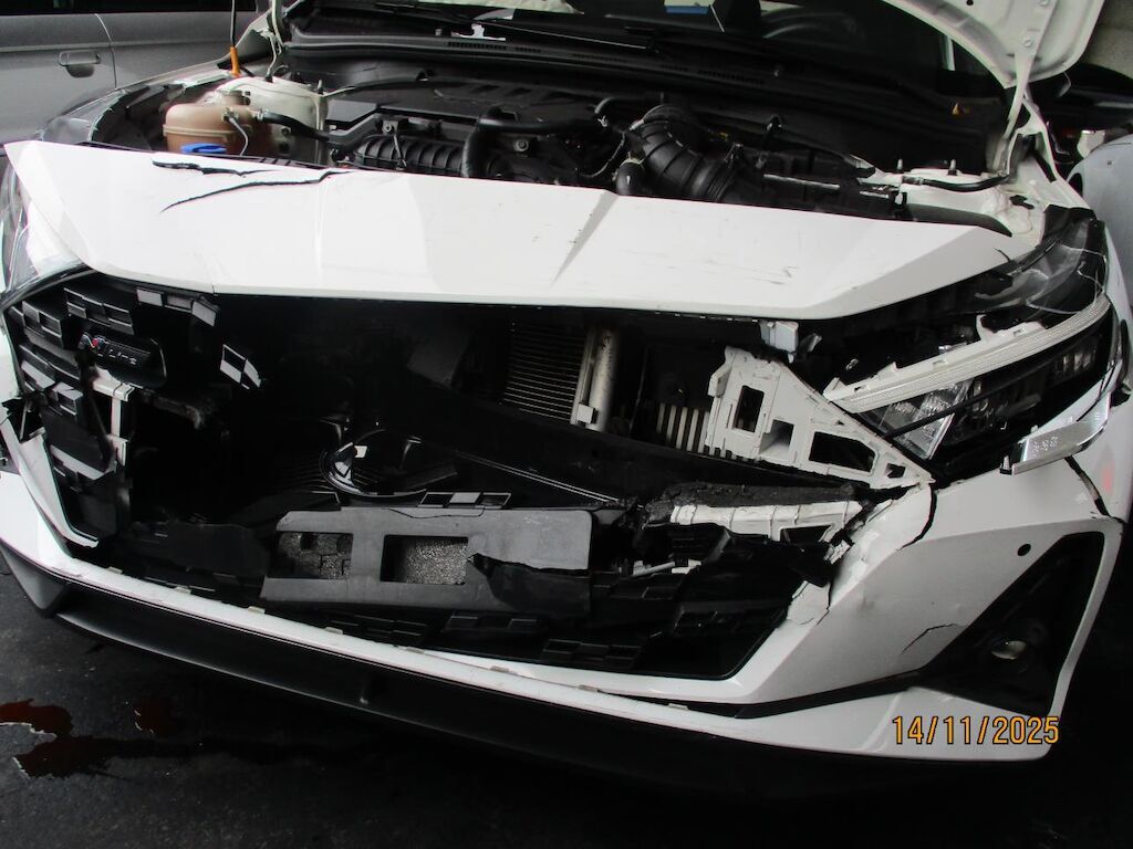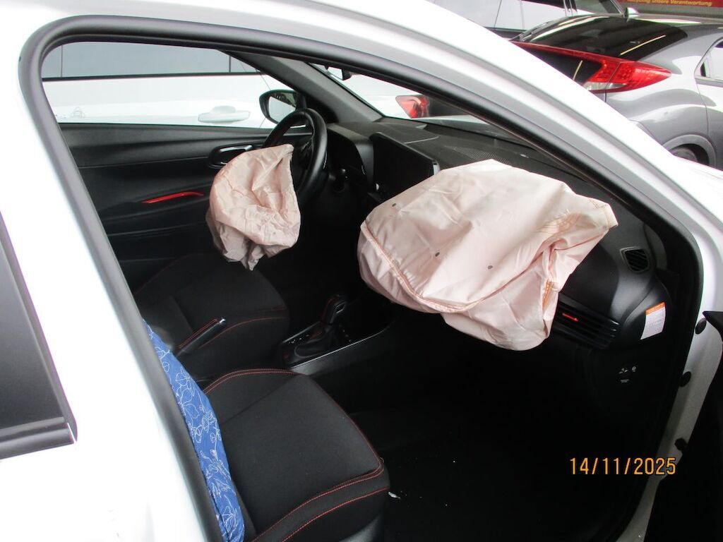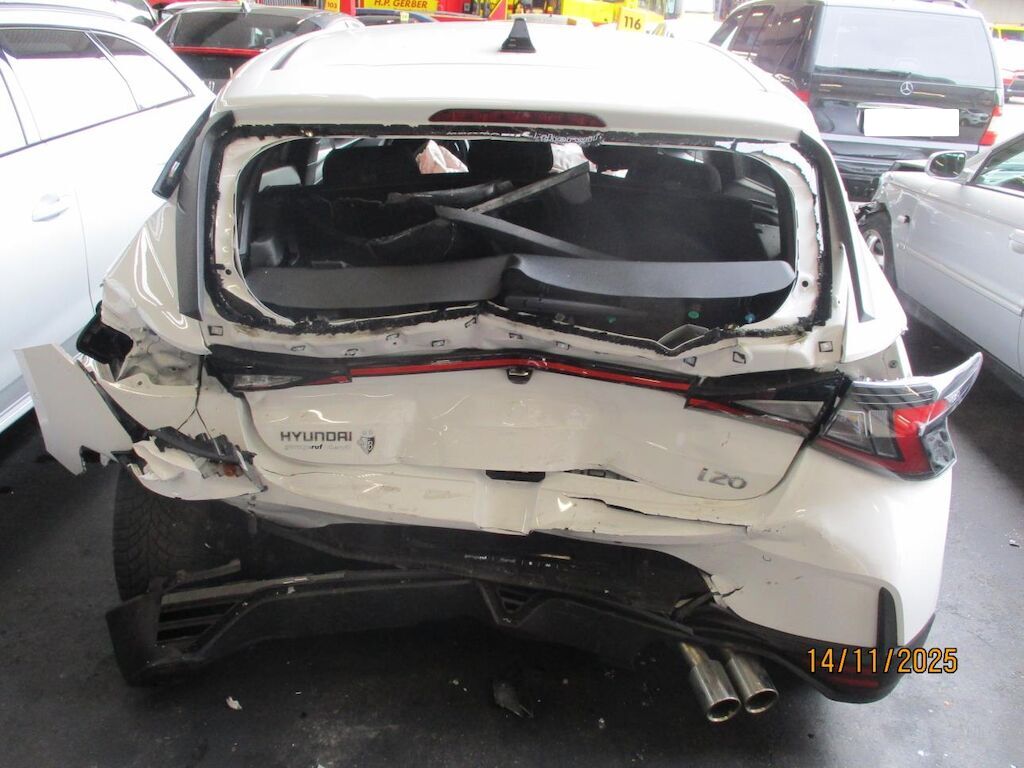 Erheblicher Front- und Heckprall. Alle Teile am Vorbau und am Heck sind komplett deformiert und zertrümmert. Das ganze Auto wurde zusammen gedrückt. Die ganze Karosse ist gestaucht, die Türen sind verklemmt. Einzig die Türe VR ist unbehelligt. Die Airbags vorne sind lose, die Frontscheibe ist gebrochen. Motor Getriebe Vorderachse Hinterachse Airbags ausgelöst: 2 unbekannt ( Abfallcode 16.01.04ak )