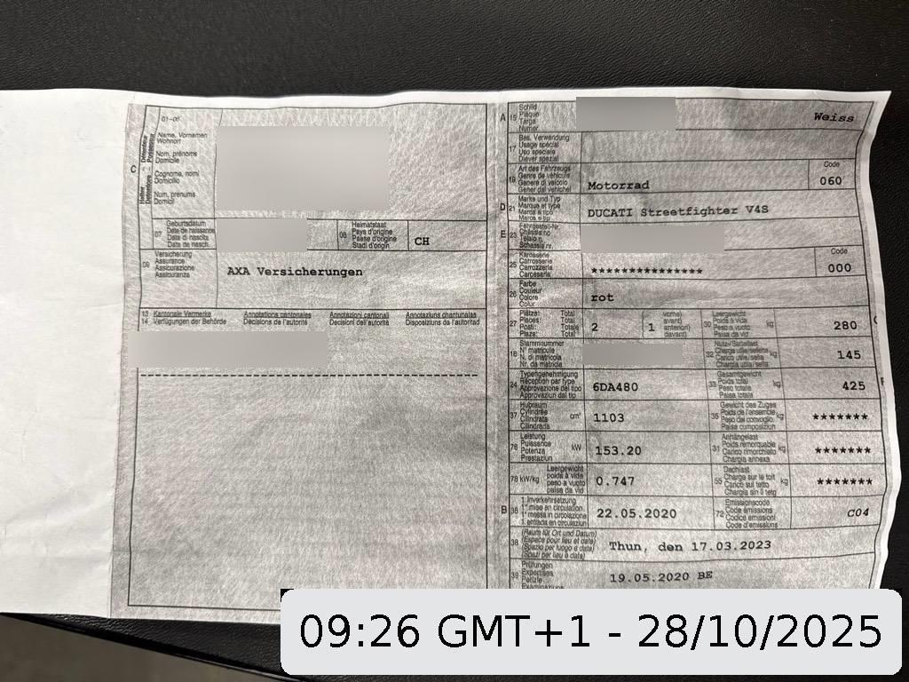 Mofa hat diverse nicht originale Anbauteile (Windschild, Kurz-Heck, kleine Blinker, Motorschutz)Die (vom Fahrzeugexperten) ermittelten Reparaturkosten beziehen sich auf das versicherte Ereignis. Allfällige zusätzliche, nicht versicherte Schäden/Vorschäden, sind in den Reparaturkosten nicht enthalten. Die deklarierten Ausstattungsmerkmale können von der effektiven Ausstattung abweichen.AchtungBei einem Hochvoltsystem - Spannungsfreiheit prüfen. Sicherheitshinweise und Betriebsanleitungen des Herstellers konsultieren und befolgen.
