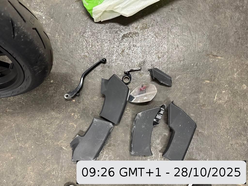 Antrieb, Armaturen, Auspufftopf, Diverse Anbauteile, Front, Getriebe, Heck, Heckverkleidung, Motor, Rad hinten, Rahmen, Rücklicht, Scheinwerfer, Schutzblech hinten, Schutzblech vorne, Schwinge, Sitz, Tank, Verschalungen hinten, Windschutzscheibe, Zündschloss