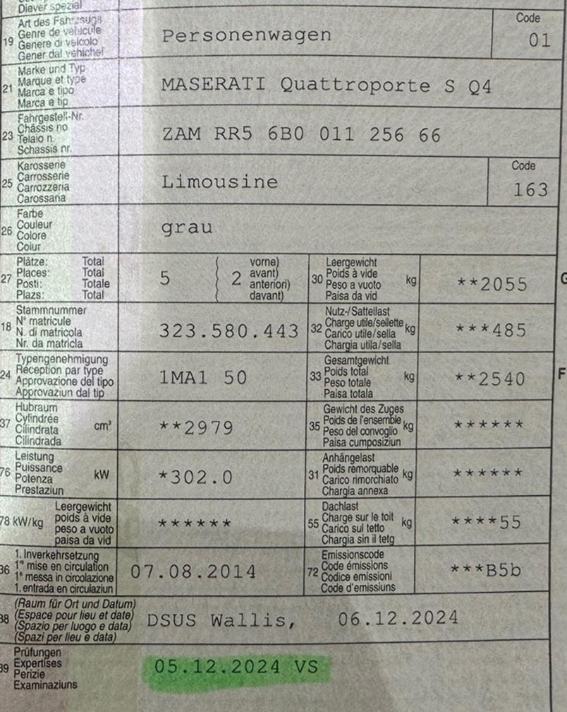 Sehr schöner Maserati Das Fahrzeug wurde nicht von unserer Werkstatt überprüft. Am Fahrzeug wurde kein Werkstatttest gemacht (Für sichtbare oder nicht sichtbare Mängel wird nicht gehaftet). Wir testen und prüfen nicht alle Funktionen vom Fahrzeug. Das Risiko liegt somit vollumfänglich beim Käufer. Nach erhalt des Zuschlags, gibt es keine Nachverhandlung, auch wenn nicht deklarierte Mängel zum Vorschein kommen. Ab Platz ohne Garantie oder Gewährleistung, Wandelung und Minderung werden wegbedungen