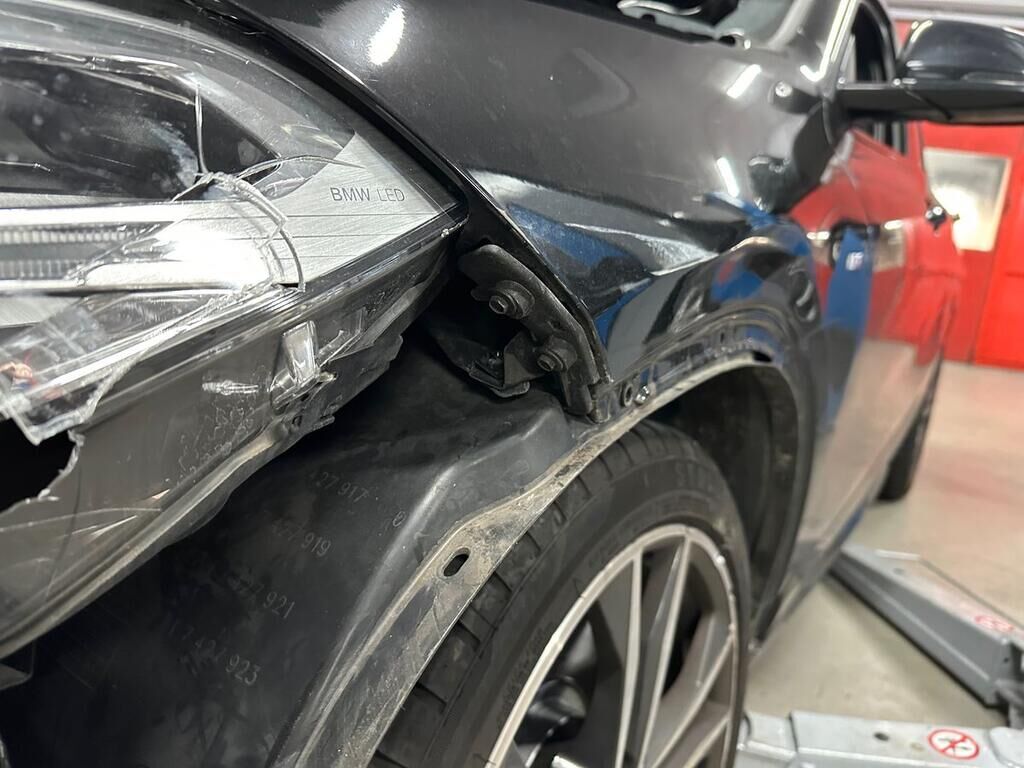 Anprall mit Deformation der Stossstange, Nebellampe, Scheinwerfer, Kotflügel, Felge, Reifen, Stossdämpfer, Fahrwerk, Lenkung, Tür vorne, Tür hinten und dem Radlauf hinten. Motor Getriebe Vorderachse Hinterachse Airbags ausgelöst: 0 unbekannt ( Abfallcode 16.01.04ak )
