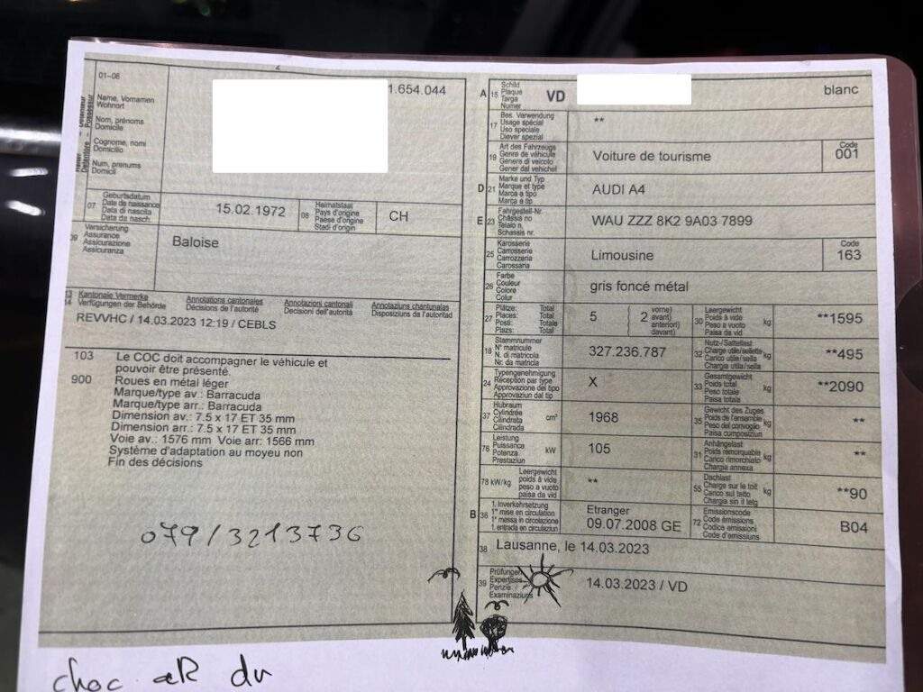 dommage arrière droit : aile et portes enfoncés , jante frottée , essieu arrière plié ? DP : dommage avant gauche et carrosserie Motor Getriebe Vorderachse Hinterachse Airbags ausgelöst: 0 Nein ( Abfallcode 16.01.04ak )