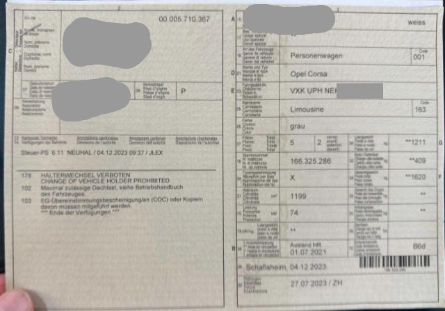 Fahrzeugdokumente vorhanden.