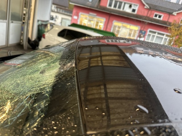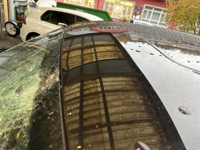 Dach eingedrückt. Dach ist vorne links eingedrückt.