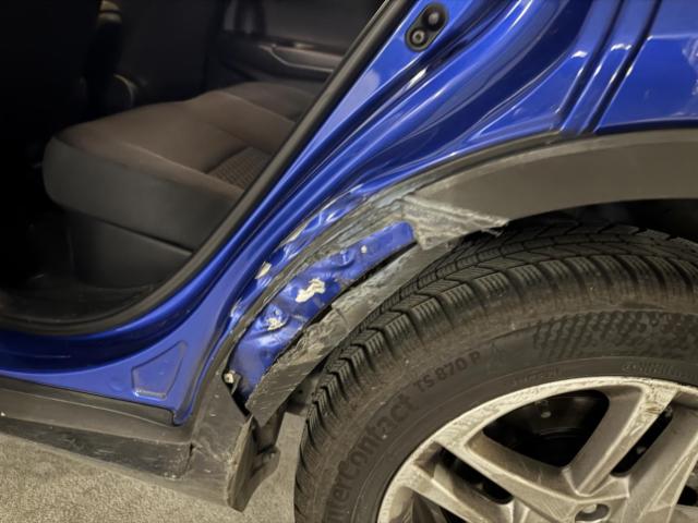 Linke Seite beschädigt. Anstoss links im Bereich der A-Säule. Anstoss links im Bereich der B-Säule. Anstoss links im Bereich der C-Säule. Tür vorne links ist eingedrückt. Tür hinten links ist eingedrückt.