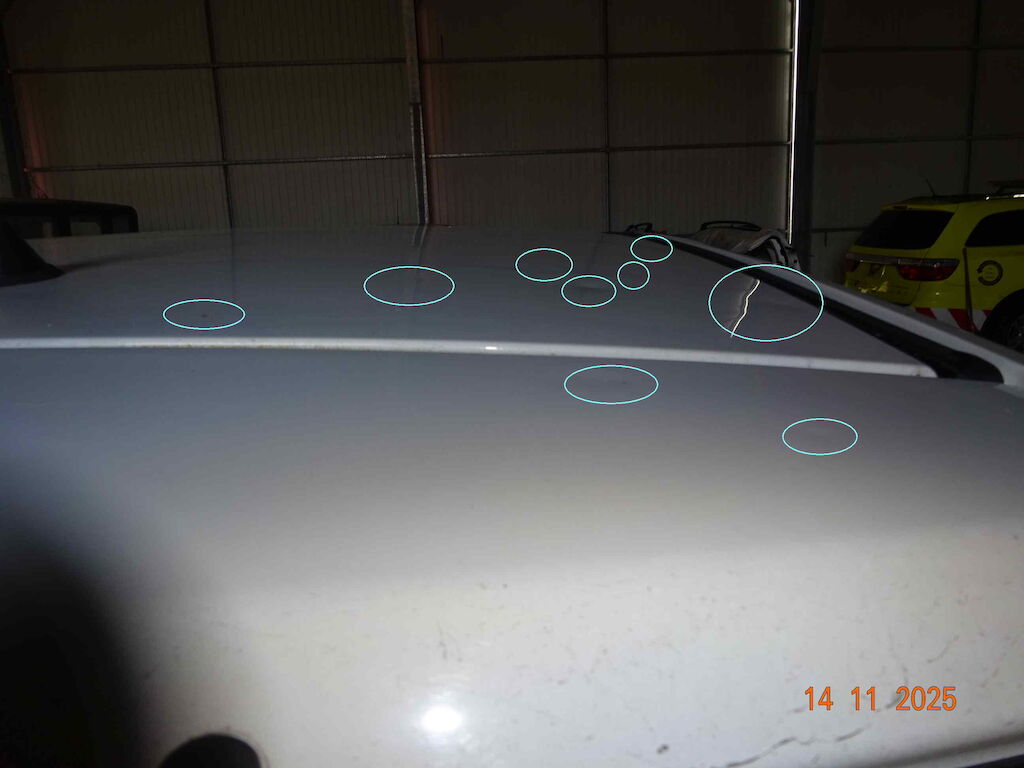 Aufhängung beschädigt, Fahrzeug hat einen Leichten Hagelschaden.
