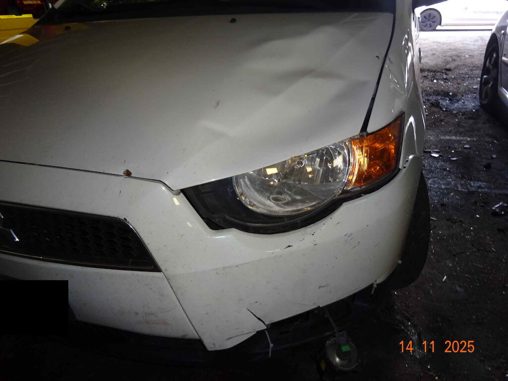 Stossstange vorne gerissen, Aufhängung verbogen, Kotflügel vorne links verbeult, Motorhaube deformiert, Scheinwerfer links gerssen, Frontscheibe gerissen, Motor Getriebe Vorderachse Hinterachse Airbags ausgelöst: 0 unbekannt ( Abfallcode 16.01.04ak )