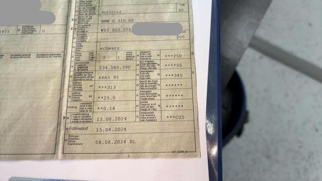 Fahrzeugdokumente vorhanden.