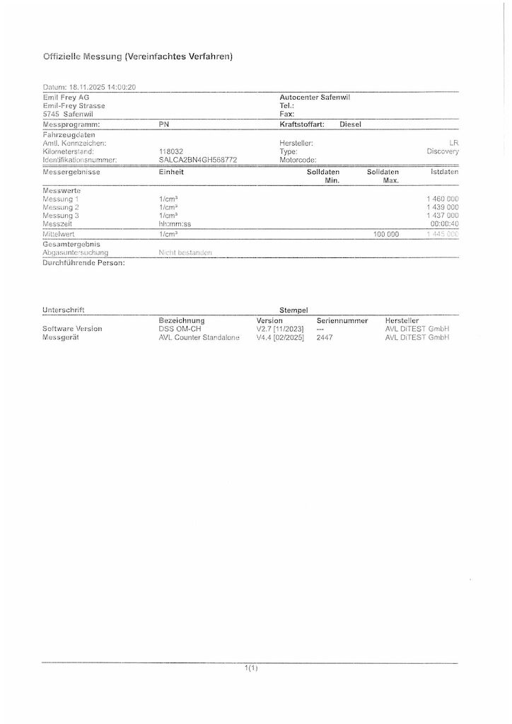Dieselpartikelfilter hat den Test nicht bestanden. Der Eintauschtest unseres Diagnostikers finden Sie inkl. dem Dieselpartikelfiltertest anbei. Aus diesem Grund wurde das Fahrzeug nochmals seriös inseriert inkl. technischer Begutachtung. Das Fahrzeug kommt ca. in 4 Monaten an mit rund 125'000km