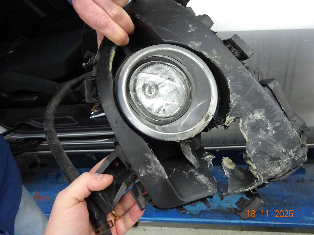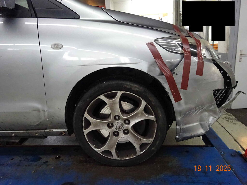 Stossstange vorne gerissen, Nebellampe rechts gebrochen, Radhausschale rechts gerissen, Risiko Aufhängung rechts, Motorabdeckung gerissen, Auspuffhalterung hinten abgerissen, Unterbodenabdeckung gerissen, Kotflügel rechts deformiert, Türe Vorne rechts deformiert, Türe hinten rechts Kratzer, Seitenwand rechts kratzer, Stossstange hinten kratzer, Schweller rechts deformiert. Felge vorne rechts beschädigt Motor Getriebe Vorderachse Hinterachse Airbags ausgelöst: 0 unbekannt ( Abfallcode 16.01.04ak )