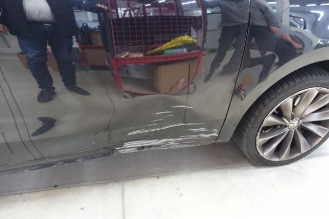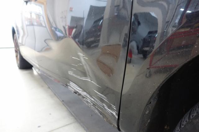 Schweller rechts ist eingedrückt. Tür vorne rechts ist eingedrückt.