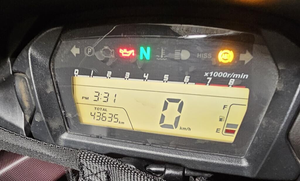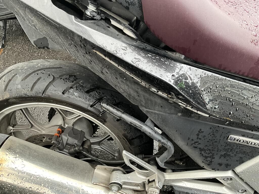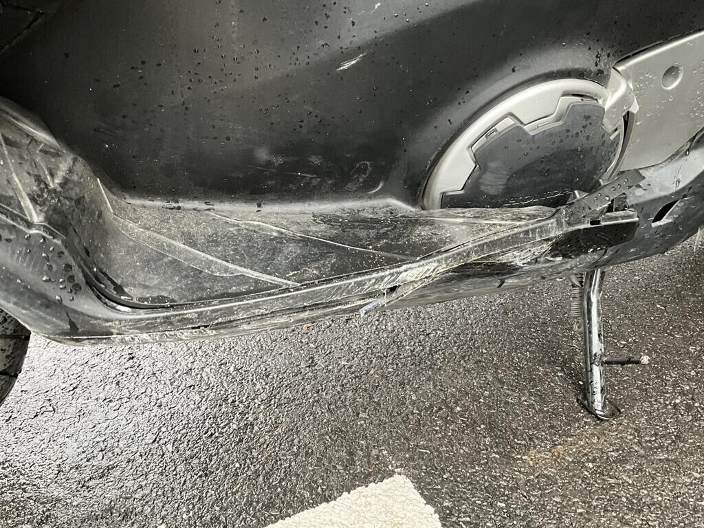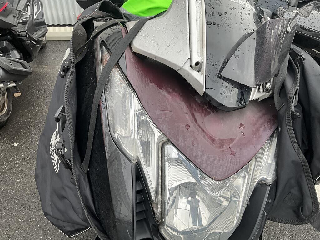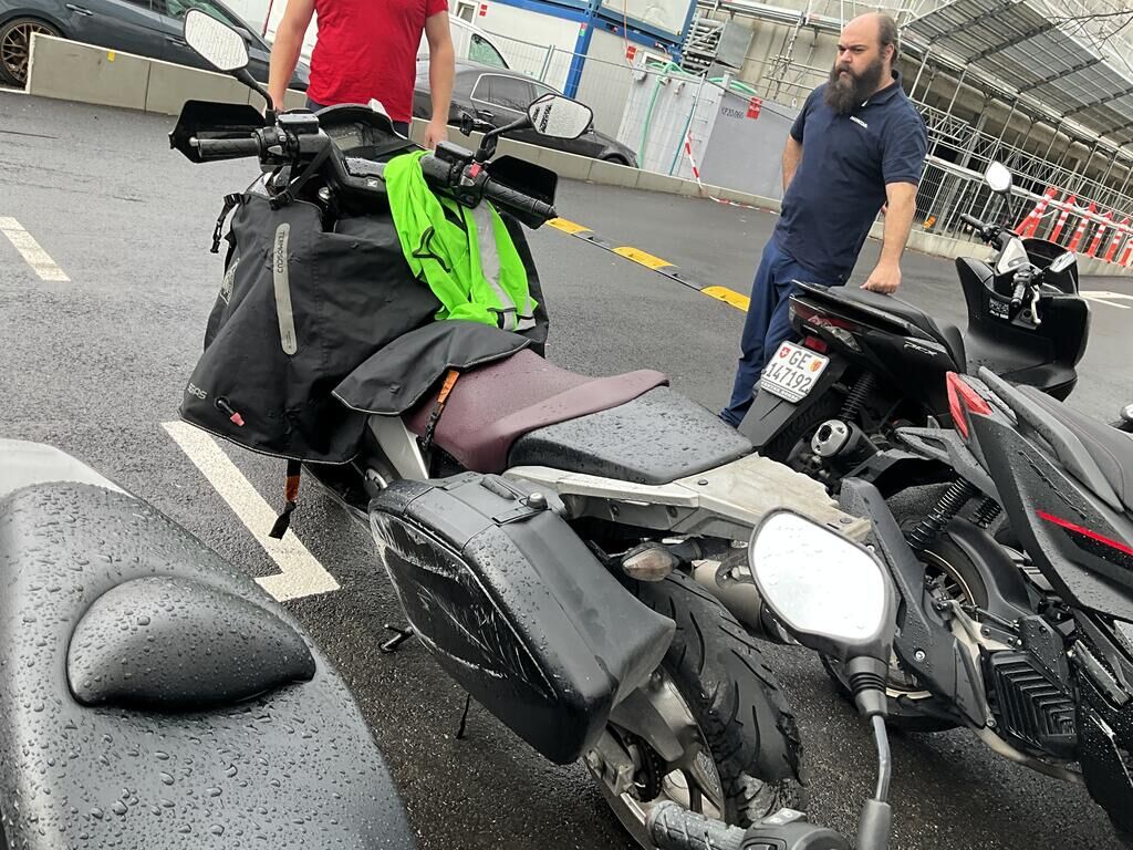 Top case, valises ARR, phare AV, pare-brise, support de carénage AV, carénages flanc GA, garde boue AV, rétroviseur GA, bavette ARR endommagés. Motor Getriebe Vorderachse Hinterachse Airbags ausgelöst: 0 unbekannt ( Abfallcode 16.01.04ak )