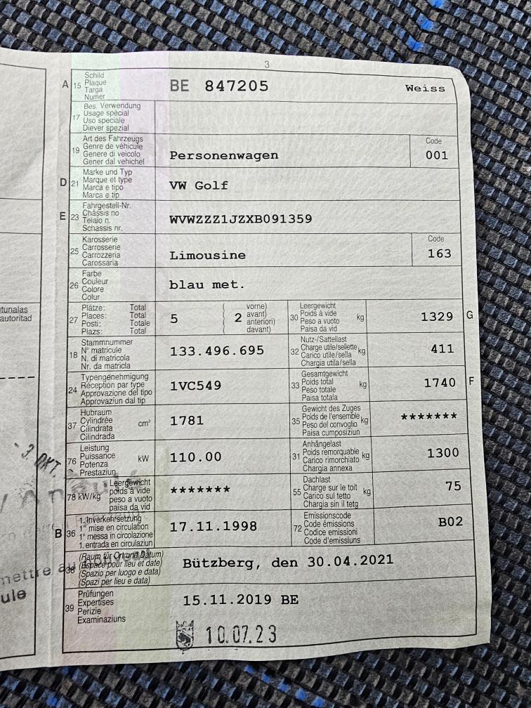 Der Golf ist Fahrbar die Batterie sollte ersetzt werden und das ABS leuchtet. Es wurde keine Technissche besichtigung gemacht Fahrzeug ab Platz ohne Garantie