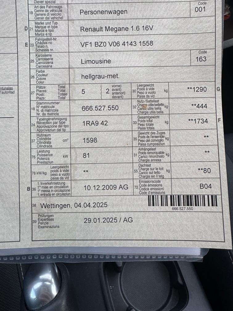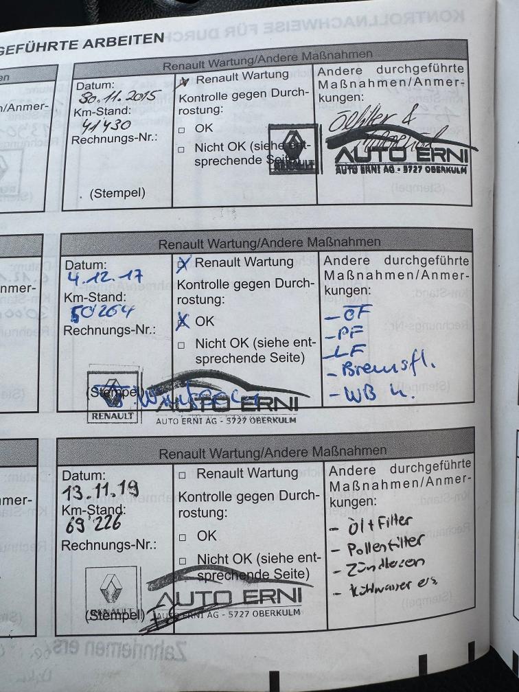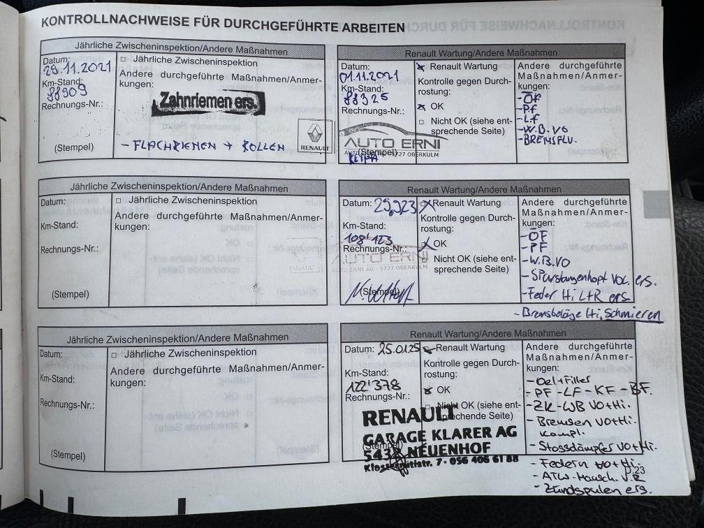 **Es wurden am 25.01.2025 diverse Arbeiten am Fahrzeug ausgeführt: Service, Öl, Ölfilter, Pollenfilter, Luftfilter, Kraftstofffilter, Zündkerzen, Bremsflüssigkeit Wechsel, Wischerblätter vorne und hinten, Bremsen vorne und hinten komplett, Stossdämpfer vorne und hinten ersetzt, Federn vorne und hinten ersetzt, Antriebswellenmanschette VR ersetzt, Zündspulen ersetzt, MFK 29.01.2025** Am Fahrzeug wurde kein Werkstatttest gemacht (Für sichtbare oder nicht sichtbare Mängel wird nicht gehaftet). Wir testen & kontrollieren nicht alle Funktionen vom Fahrzeug. Das Risiko liegt somit vollumfänglich beim Käufer. Fahrzeug kann gegen Voranmeldung besichtigt werden. Nachdem der Höchstbietende den Zuschlag erhalten hat, gibt es keine Nachverhandlung, auch wenn nicht deklarierte Mängel zum Vorschein kommen sollten. Ab Platz ohne Garantie, Wandelung und Minderung werden wegbedungen. Fahrzeug ab Platz und ohne Garantie. Bitte innerhalb 5 Arbeitstagen abholen.