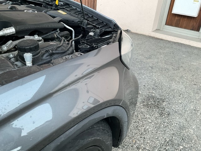Front eingedrückt. Front links eingedrückt. Frontblech/Maskenblech eingedrückt.