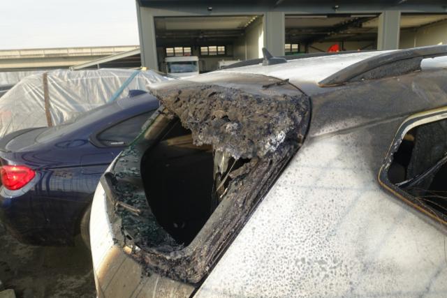 Fahrzeug ist NICHT fahrbar. Fahrzeug ist teilweise ausgebrannt. Fahrzeug weist äusserlich Brandspuren auf. Fahrzeug weist im Innenraum Brandspuren auf. Motor startet nicht, Ursache unbekannt.