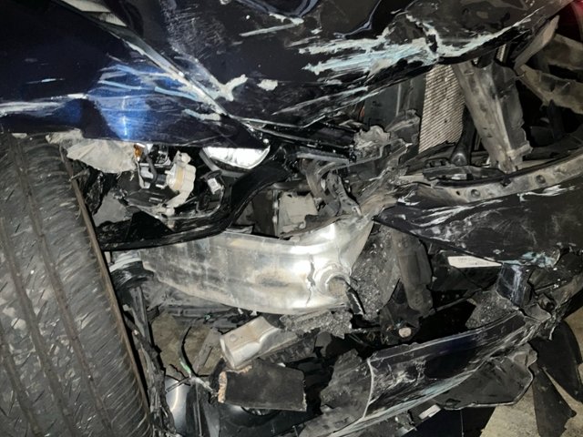 Radhaus vorne rechts und links eingedrückt. Längsträger vorne rechts und links gestaucht.