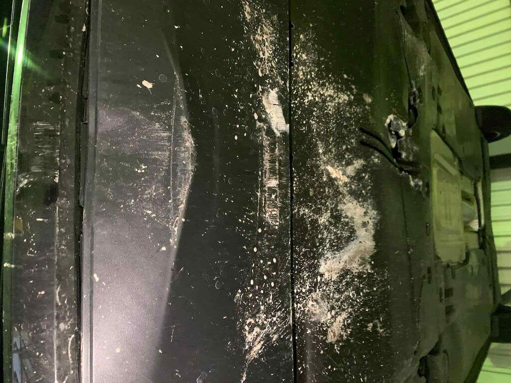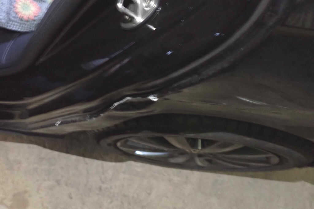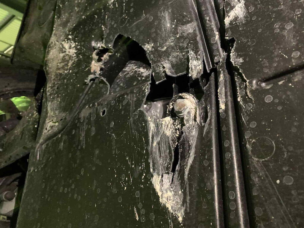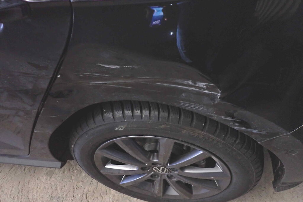 Seitenwand und Tür hl zerkratzt und deformiert, Felgen vl und hl zerkratzt, Achse vl beschädigt (Rad vl steht schräg, Antriebswelle l ausgerissen), Frontstossfänger deformiert, Kondensator, Kühler und Lüfter beschädigt, Schlossträger gebrochen, Schweller r deformiert, diverse Unterbodenabdeckungen gerissen, Risiko Unterboden/ Getriebe Motor Getriebe Vorderachse Hinterachse Airbags ausgelöst: 0 unbekannt ( Abfallcode 16.01.04ak )