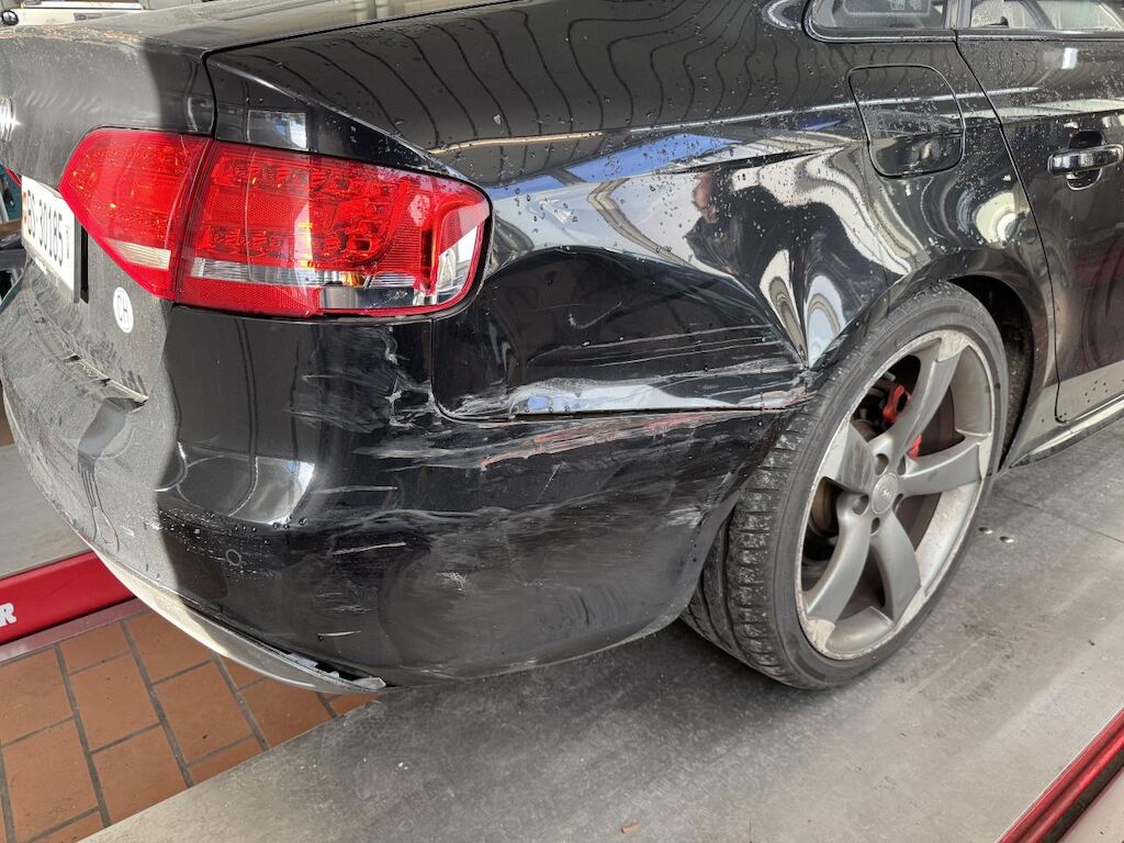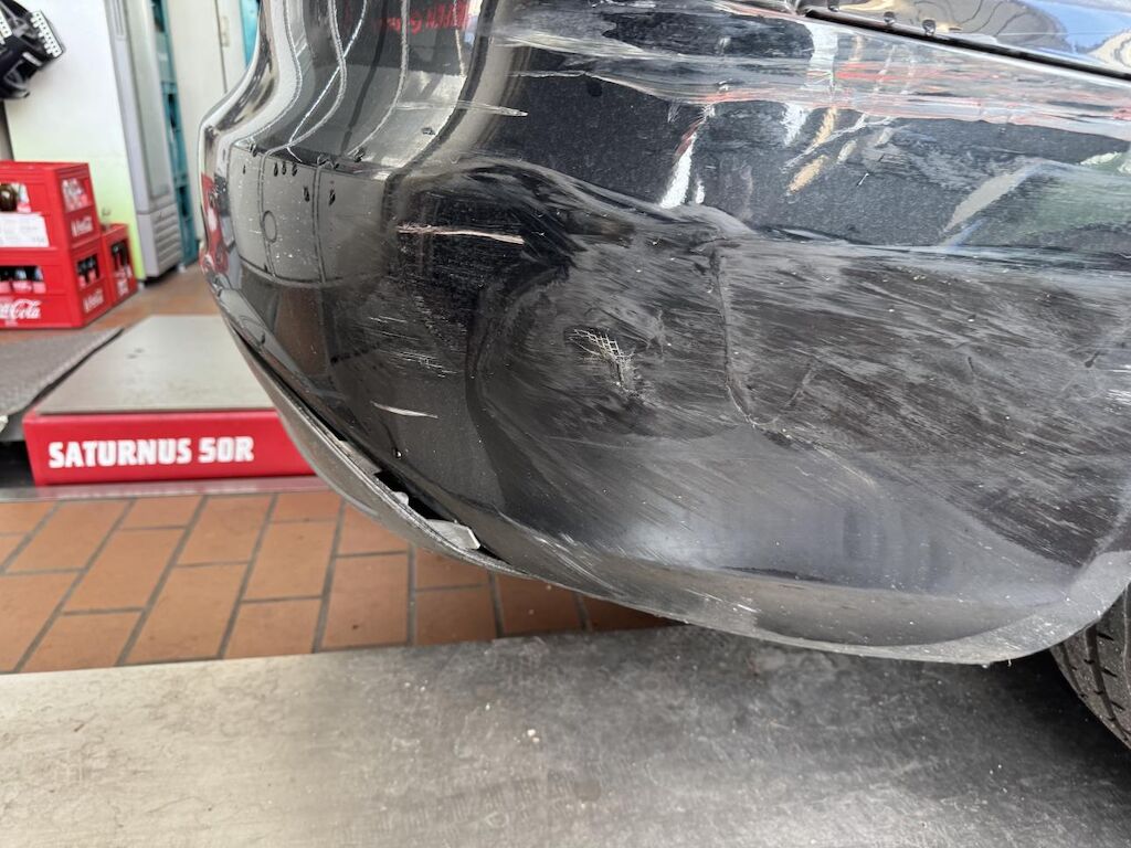 Anprall Seite rechts; Dabei wurde die Stossstange hinten, die Heckleuchte rechts aussen und der Kühlergrill zerbrochen, die Seitenwand gestaucht und die Felge hinten und die Stossstange vorne zerkratzt. Risiko Hinterachse / Radaufhängung hinten rechts. Motor Getriebe Vorderachse Hinterachse Airbags ausgelöst: 0 Nein ( Abfallcode 16.01.04ak )