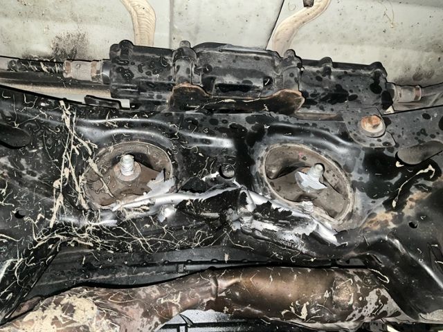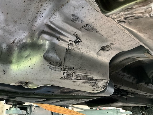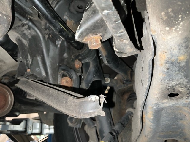 Hinterachse ist beschädigt. Motoraufhängung/Aggregateträger ist beschädigt.