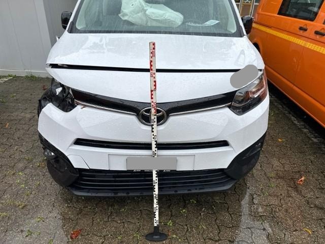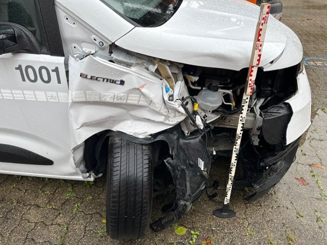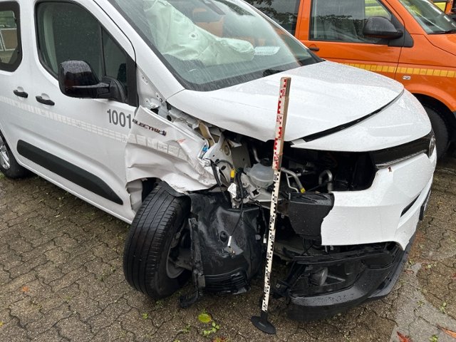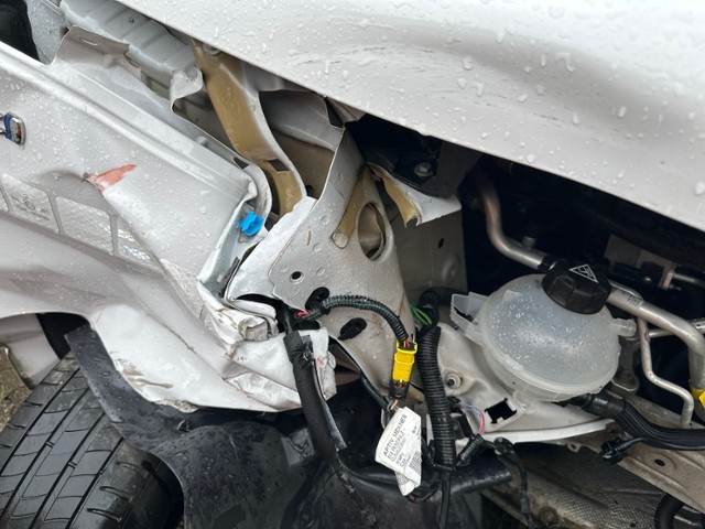 Front rechts eingedrückt. Frontblech/Maskenblech eingedrückt. Radhaus vorne rechts eingedrückt / gestaucht. Längsträger vorne rechts gestaucht. Fahrzeugvorbau verschoben.