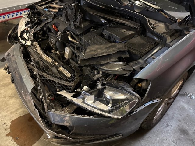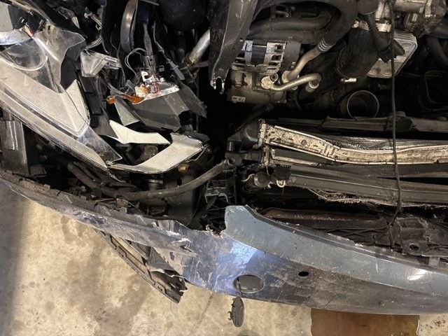 Front eingedrückt. Frontblech/Maskenblech eingedrückt. Radhaus vorne rechts und links eingedrückt.